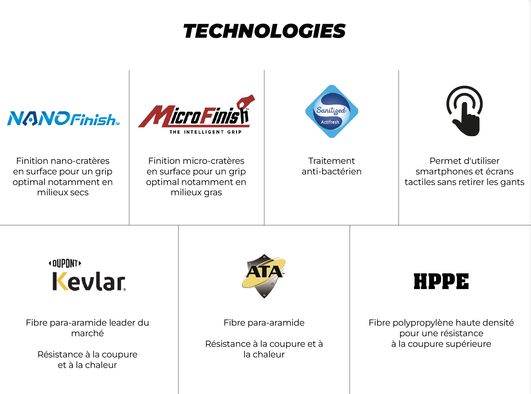 La technologie MicroFinish® brevetée est présente sur toute la gamme. Grâce à cette technologie, Towa offre le meilleur grip du marché.