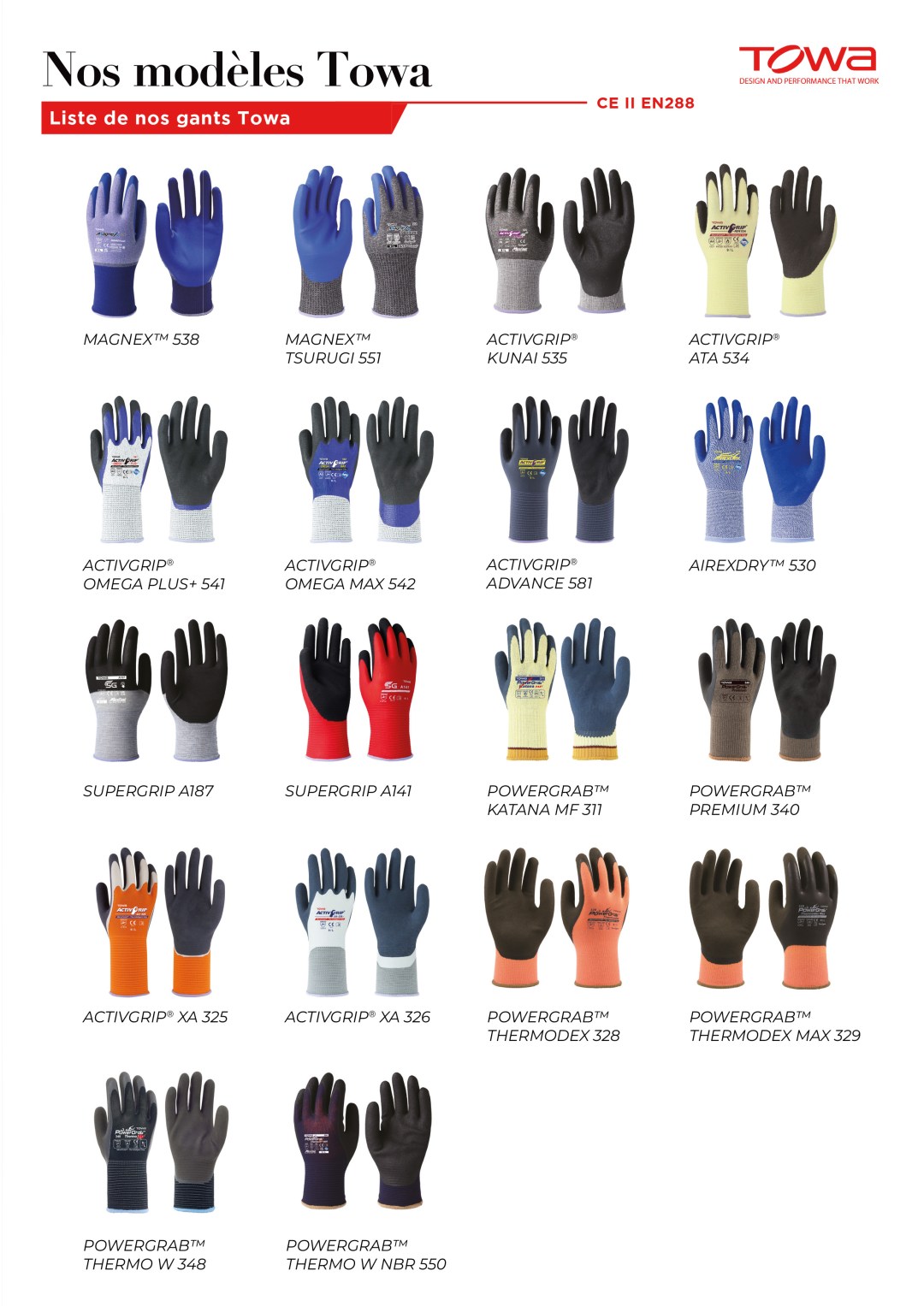 Towa Corporation développe en permanence des nouveaux types de gants et des technologies innovantes aux performances exceptionnelles, pour satisfaire les besoins des utilisateurs.