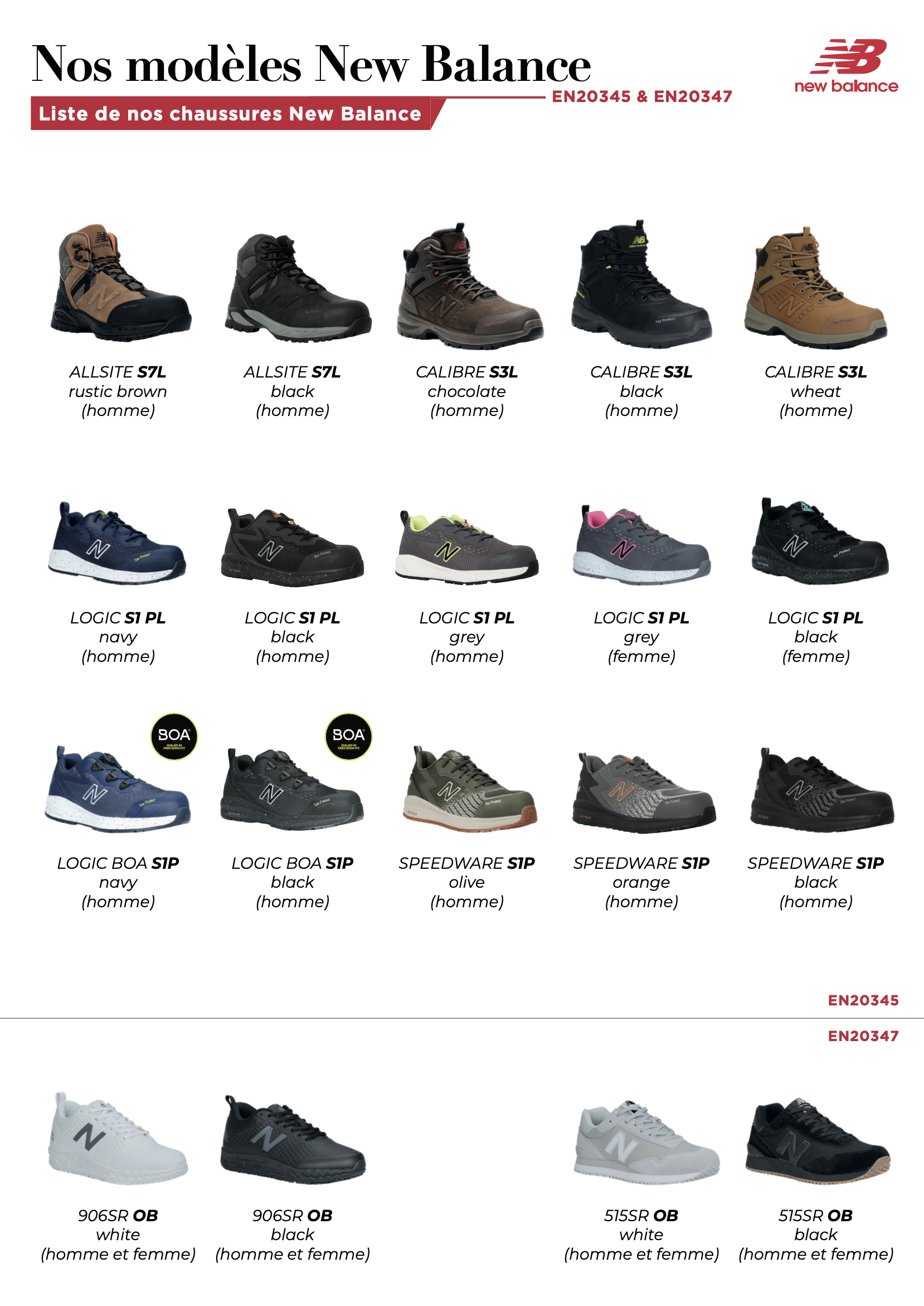 Les chaussures de sécurité et de travail New Balance intègrent les technologies et le savoir-faire qui ont fait la notoriété de la marque dans le sport, le style inimitable qui en a fait une des marques les plus branchées aujourd’hui, et le niveau de qualité sans concession qui a fait la réputation de cette marque légendaire.